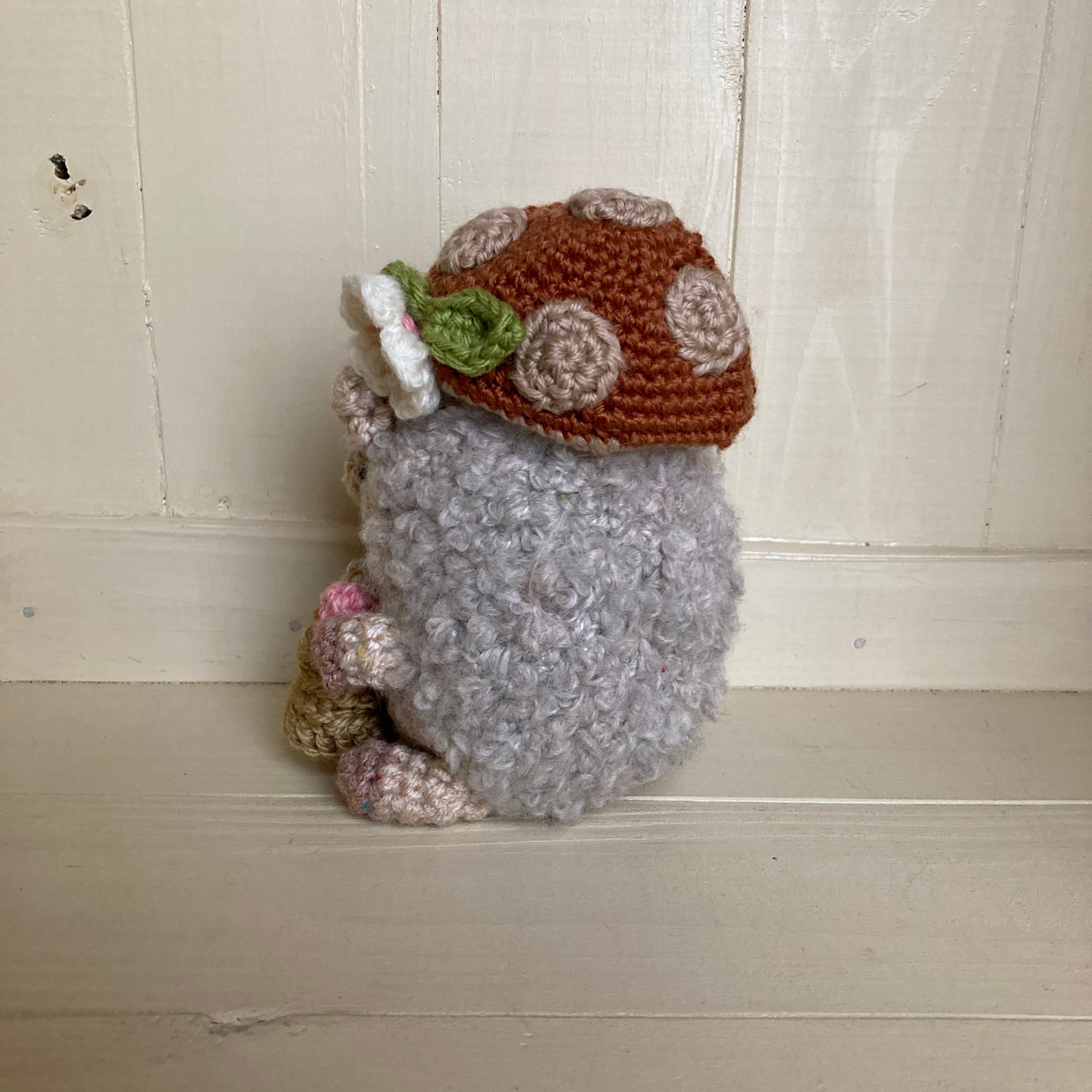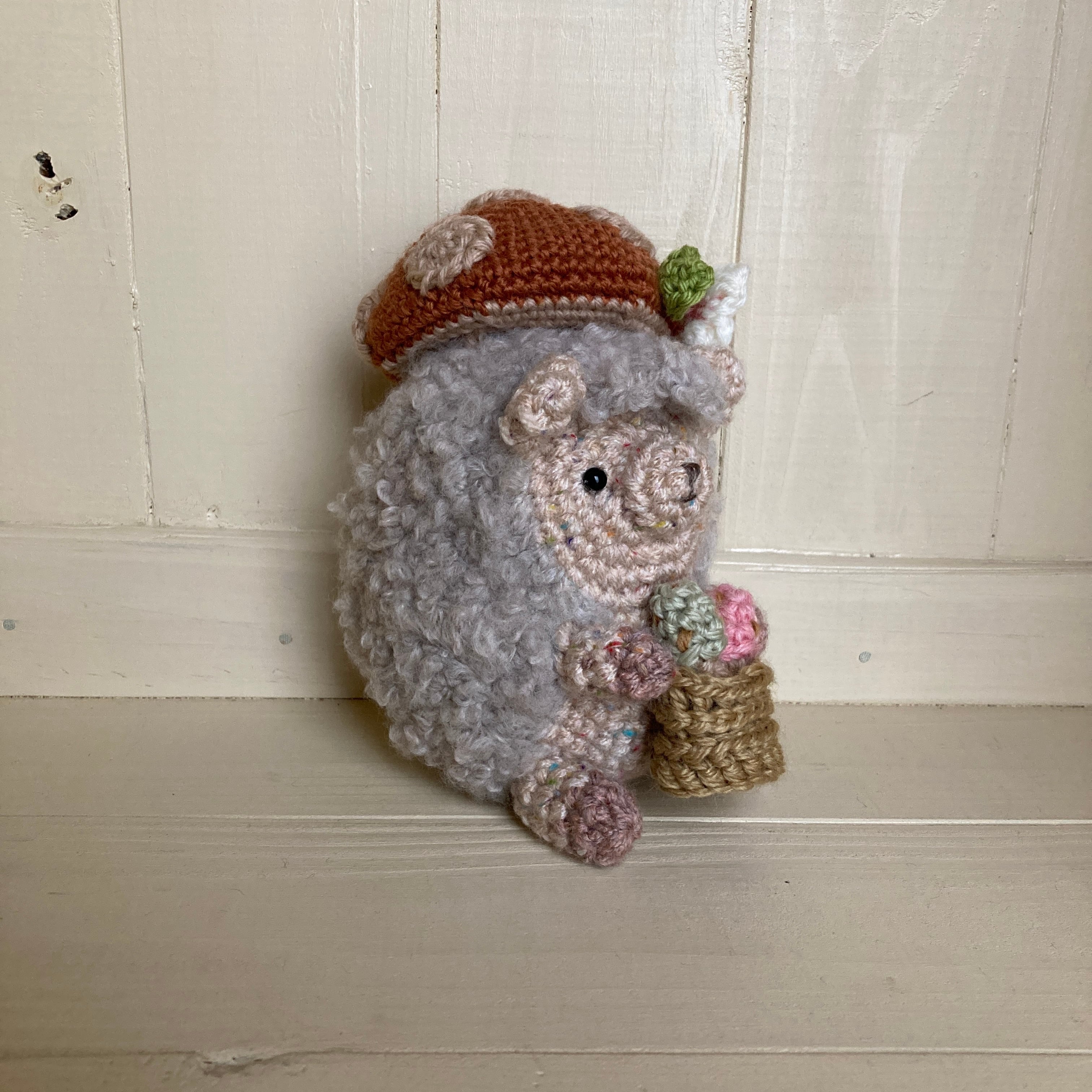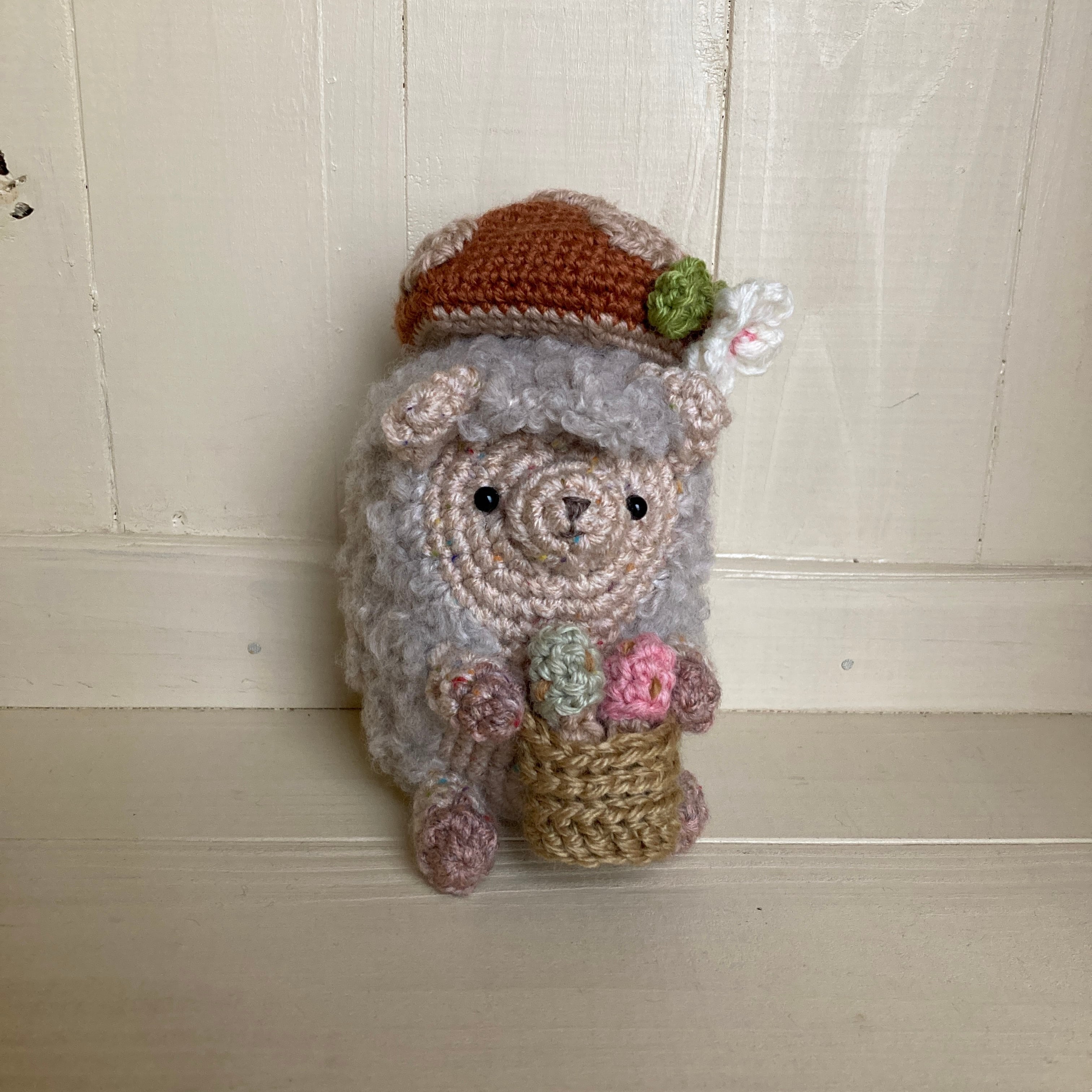 お花がちょこんと咲いた、きのこ帽子をかぶった、ふかふかのハリネズミちゃん。